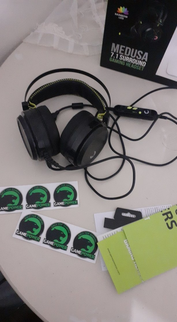 Medusa 7.1 Surround teknolojisine sahip siyah gaming kulaklık, kablolu bağlantı ve kolay kullanım için kontrol düğmeleri içerir.