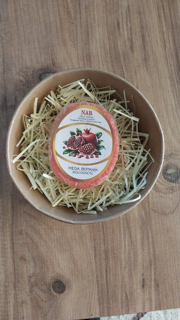Mega Botanik nar sabunu doğal temizlik sağlar, ferahlatıcı kokuludur. Oval şekilli, samanlı rustik bir kasede sunulmuştur.