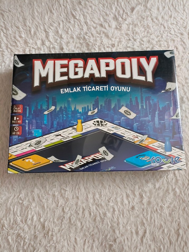 Megapoly, 8 yaş ve üzeri için uygun, 2-6 oyunculu çok renkli emlak ticaret oyunu. sıfır üründür