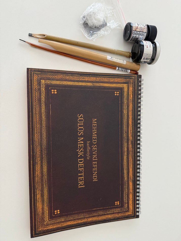 Mehmed Şevkiefendi Sulus Mesk Defteri, spiral ciltli ve geleneksel hat kalemleri ile mürekkepler içerir. Klasik el yazması tasarımı taşır. Yeni başlayanlar için set olarak kullanılabilir ilk 3 sayfası kullanılmıştır diğerleri temiz