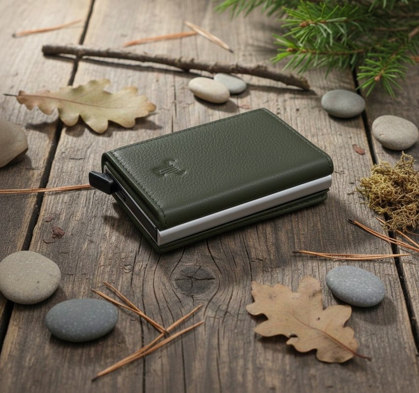 Nakışlı detaylara sahip parlak haki renkli erkek cüzdanı, modern klasik tarzı iş görünümüyle birleştirir. Şık ve yapılı bir tasarıma sahiptir.