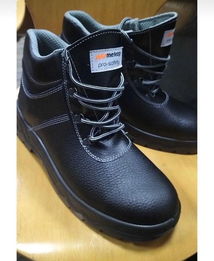 Meko Pro-Safety markalı, bağcıklı, siyah lastik erkek botları, günlük sokak stiline uygun sade tasarıma sahiptir.