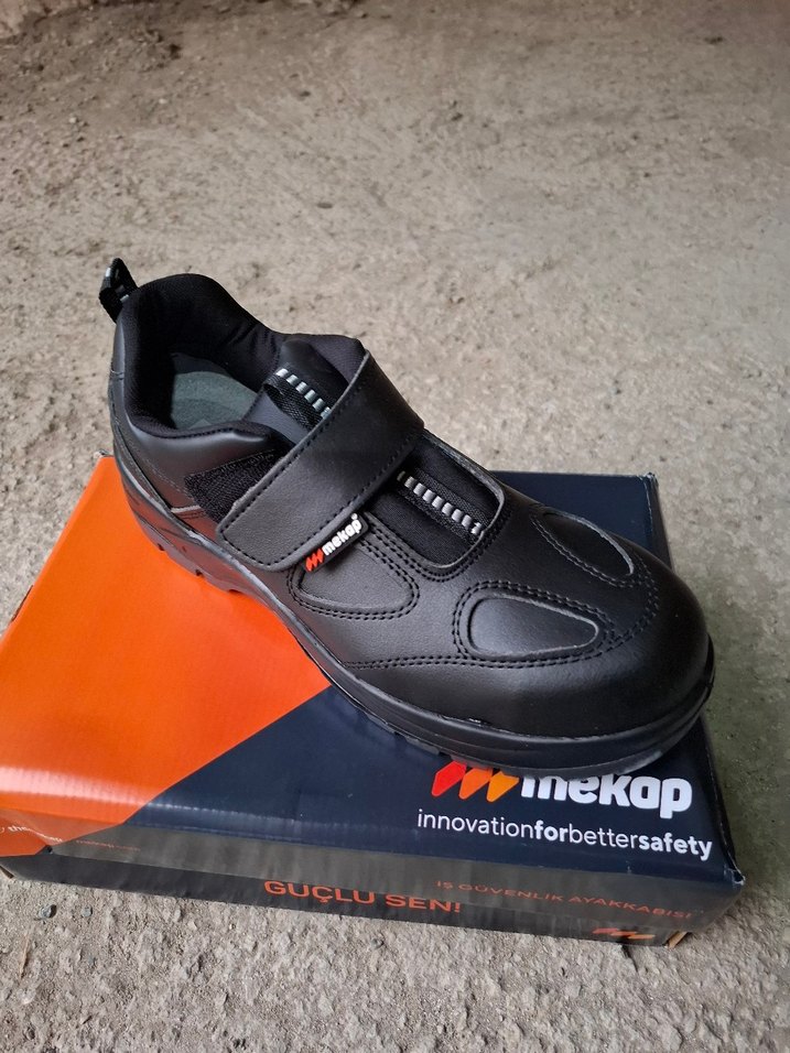 Siyah renkte, cırt cırtlı Mekap marka demirli İş ayakkabısı farklı numaralar mevcuttur