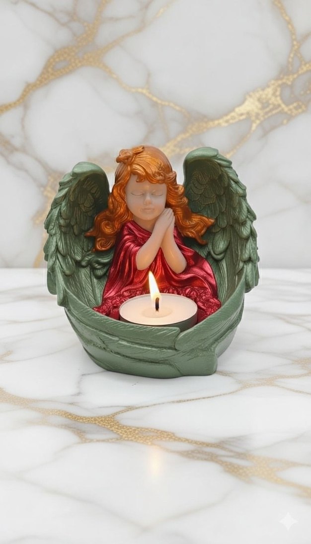 kanatlı melek figürünün içinde mumluk olarak kullanılabilen dekoratif ürün. ️