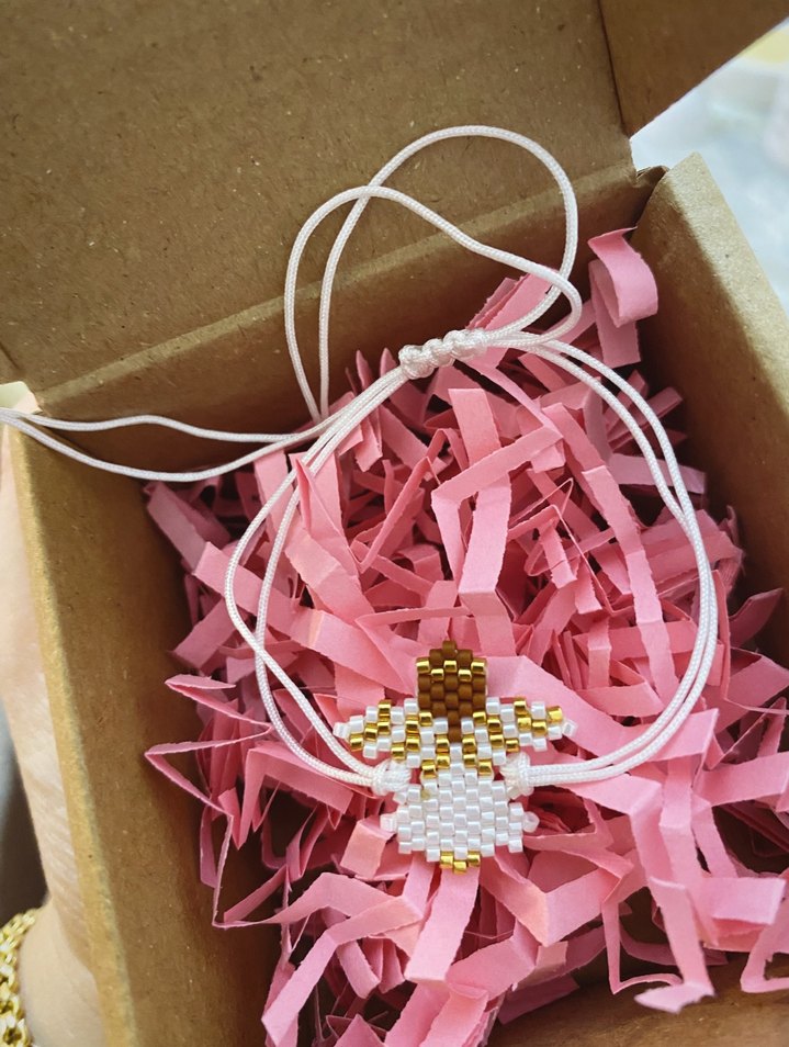 El yapımı miyuki melek şans bilekliği Her bileğe uyumludur.