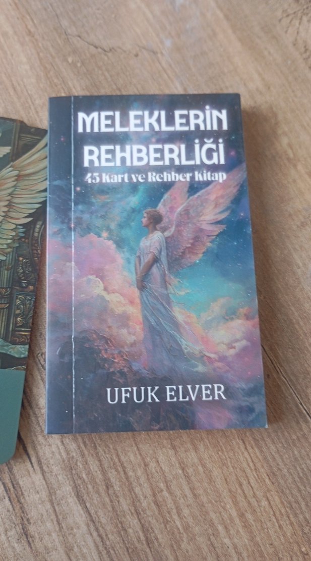Ufuk Elver'in "Meleklerin Rehberliği" kitabı, 45 kart ve rehber kitap içerir, manevi rehberlik sunar.