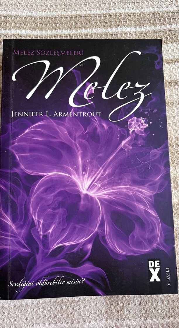 Jennifer L. Armentrout'un Melez Sözleşmeleri kitabı, mor renkli duman desenleriyle kaplı. "Sevdiğini öldürebilir misin?" sorusunu içeriyor.