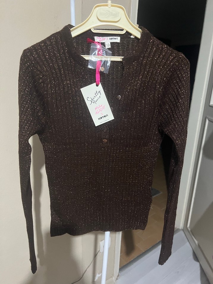 Melis Ağazat for koton Kadın Kahverengi Örgü Triko Kazak