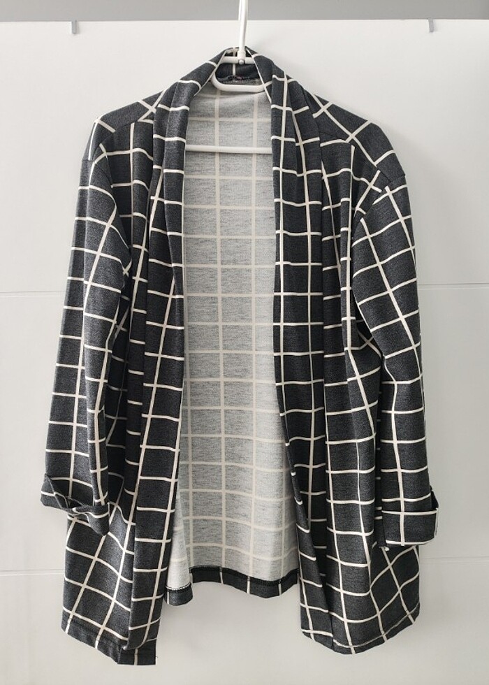 Melodi siyah beyaz kareli klasik ceket