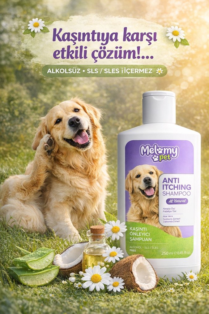 Melomy Pet kaşıntı önleyici şampuan, içeriğindeki bitki özleri sayesinde köpeklerin hassas cildini nazikçe temizler ve bakım sağlar. Tüyleri yumuşatmaya yardımcı olurken deriyi nemlendirerek kuruluğu azaltır. ✨ Kaşıntı karşıtı bakım desteği ✨ Aynısafa ve papatya özlü formül ✨ pH dengeli içerik ✨ Tüylerde parlaklık ve yumuşaklık sağlar Tüm köpek ırkları için uygundur. Ürün sıfır ve orijinaldir.