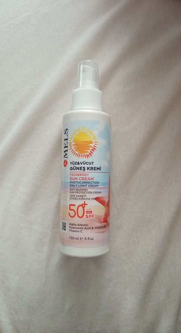 Mels yüz ve vücut için SPF 50 güneş kremi, günlük hafif koruma sağlar. Alpha arbutin, hyaluronik asit ve C vitamini içerir.