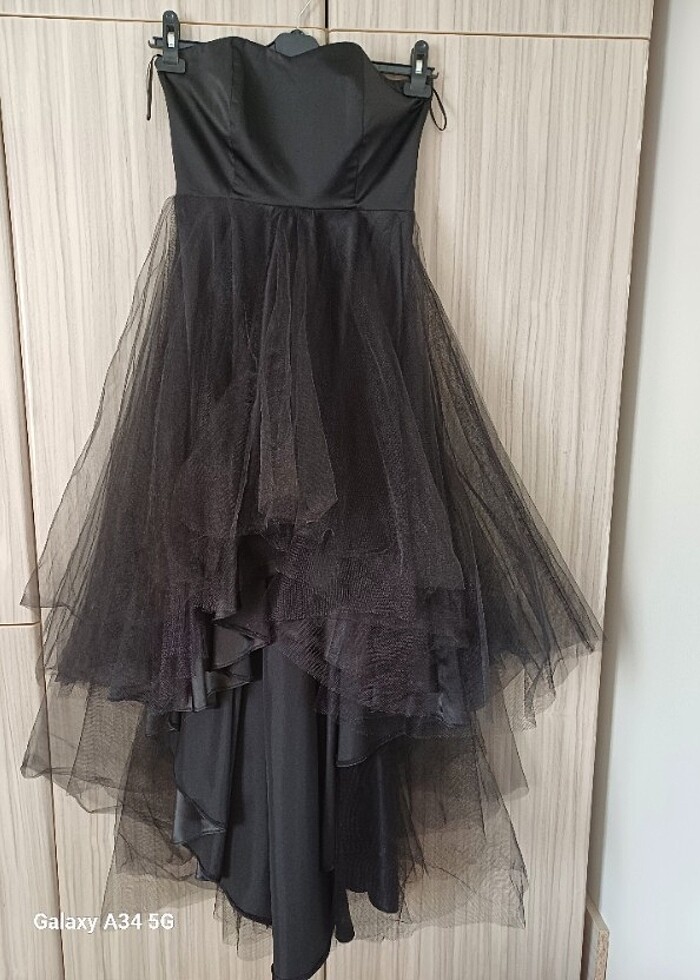 uçuş uçuş çok şık bir abiye.S beden tül ve saten kumaş kullanılmış