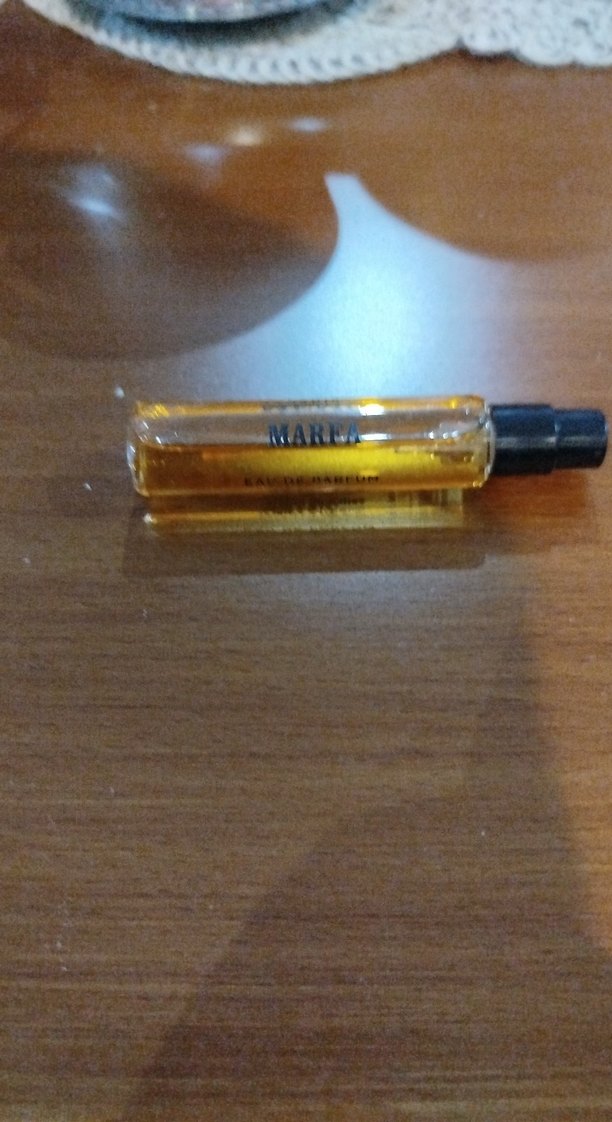 Marma kadın parfümü, koyu kapaklı küçük bir şişede, amber renkli bir koku içerir. Taşıması kolay ve kompakt tasarıma sahiptir.