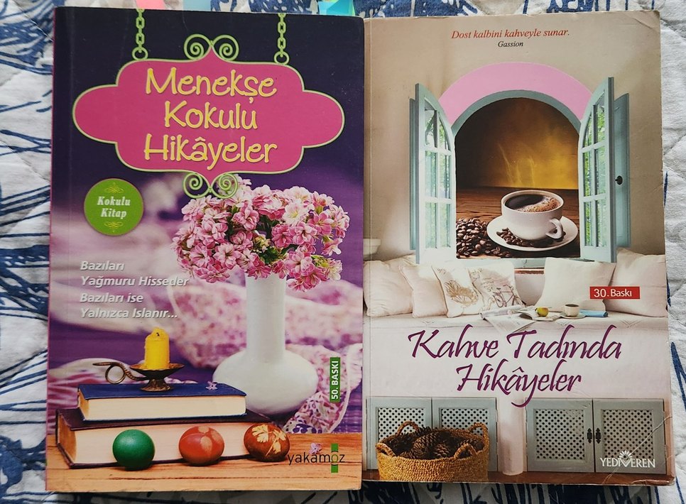 Menekşe Kokulu Hikayeler adlı şiir kitabı, menekşe çiçekleri ve sıcak bir ortamı gösteren kapağıyla duygusal hikayeler ve şiirler içerir.