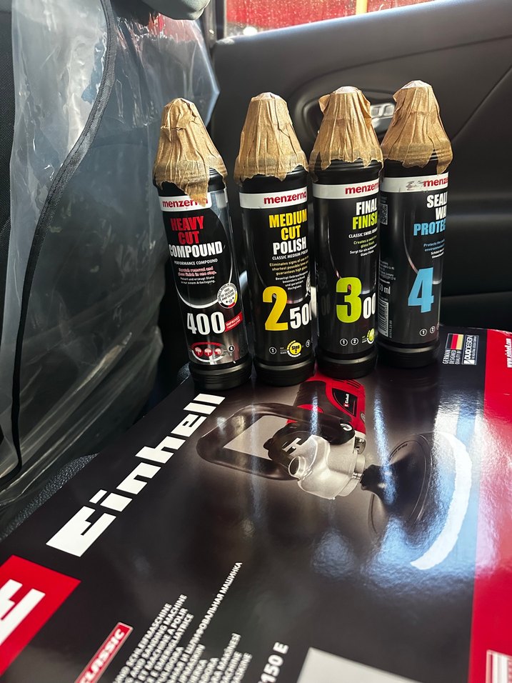Menzerna saç cilası seti, ağır kesim bileşiği, orta kesim cilası, son finisaj ve koruyucu kaplama olmak üzere dört aşamalı parlaklık sağlar. ✨