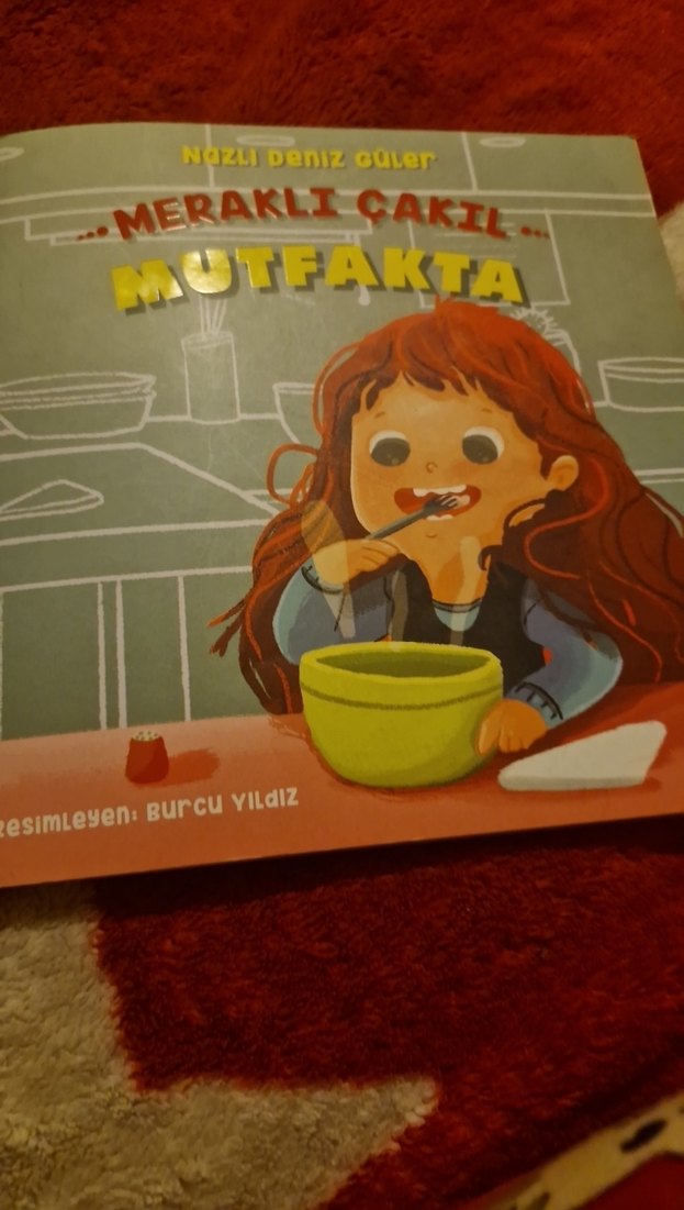 Burcu Yıldız'ın çizimleriyle 'Meraklı Çakıl - Mutfakta' adlı çocuk kitabı. Mutfak temalı renkli çizimlerle çocukları hikayeye dahil ediyor.