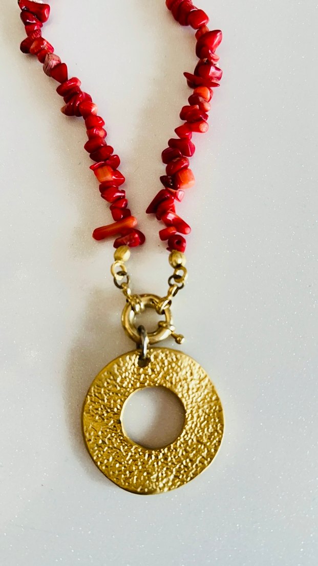 Mercan taşlı metal detaylı tasarım kolye
