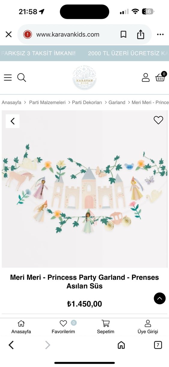Meri Meri - Princess Party Garland - Prenses Bir defa kullanıldı sıfır diyebiliriz #merimeri
