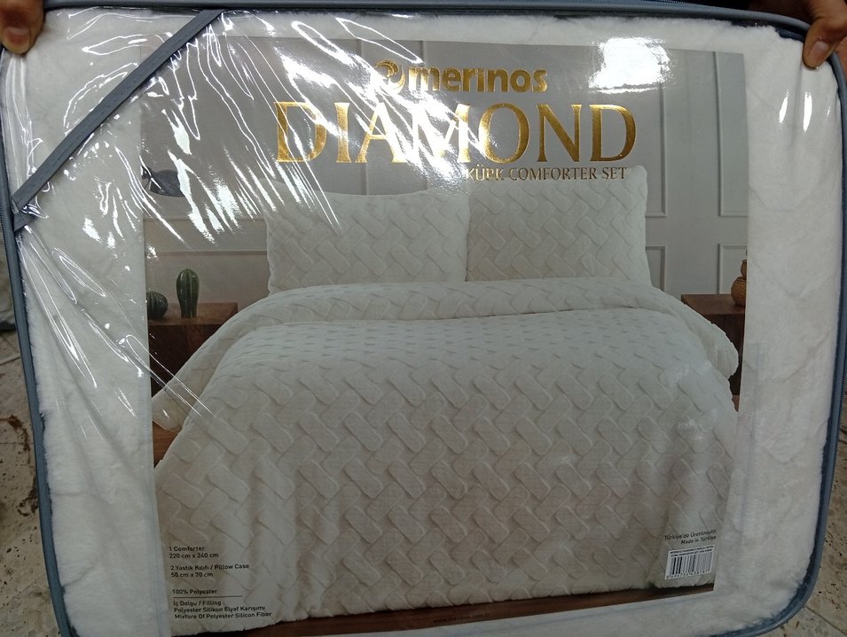 Merinos Diamond yatak örtüsü takımı, hafif renkli ve dokulu desene sahip yumuşak nevresim ve yastık kılıflarından oluşur. ️