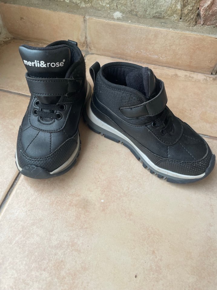 Merli&Rose marka siyah kauçuk erkek çocuk botları, kolay kullanım için cırt cırtlı bantlara sahip normcore tarzında tasarlanmıştır.