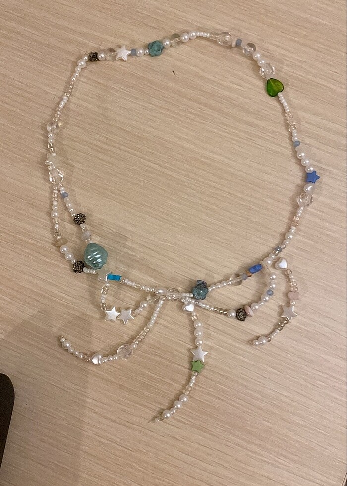 Mavi yeşil boncuk el yapımı kolye kurdeleli fairycore kidcore cutecore