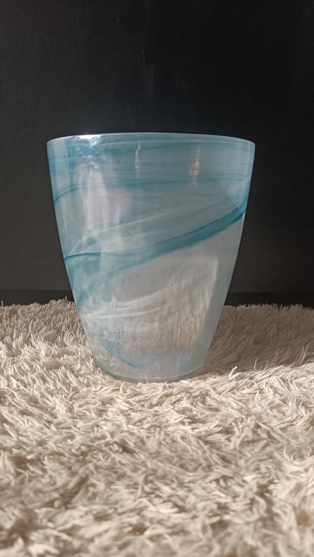 Mermer görünümlü, aqua swirl cam vazo. Kalın cam, ağır bir ürün. Kullanıma engel olmayan (tabanında farklı renk leke ve ağız kısmında üretim kaynaklı minik bir kusur) kusurları fotoğraflandı, göründüğü gibi gelecektir, lütfen inceleyerek alım yapınız. #vazo #cam #mermer #aqua #swirl #dekor #dekoratif #aksesuar #dekoratifaksesuar #dekorasyon