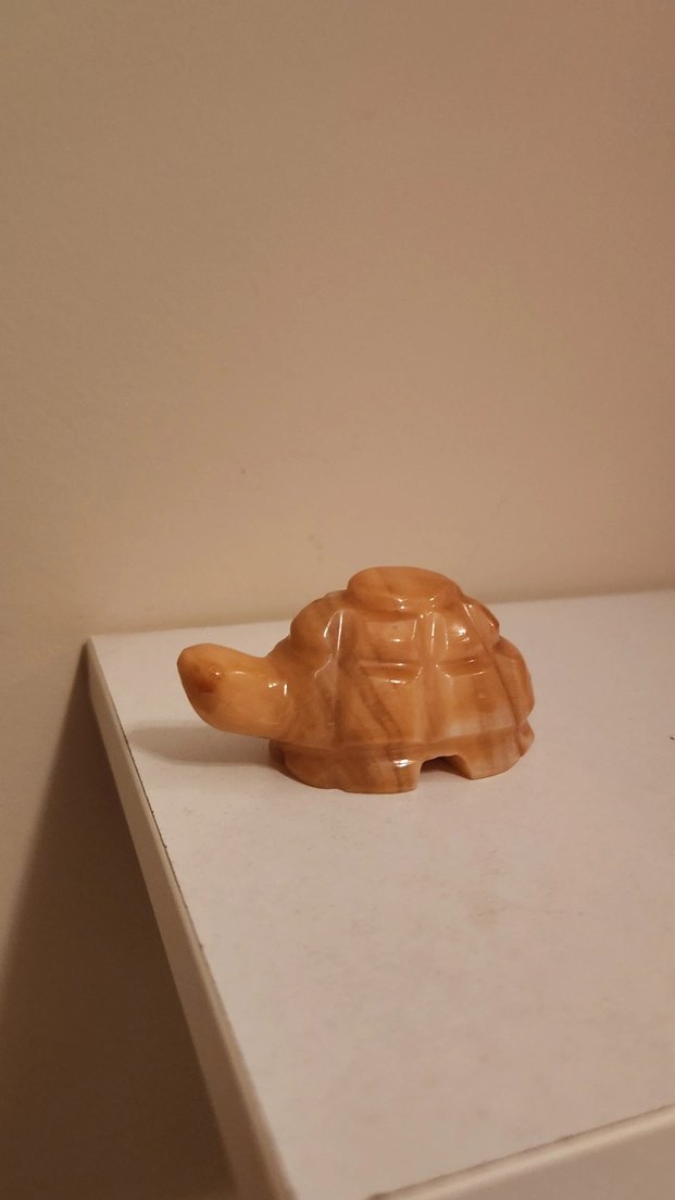 Mermer malzemeden yapılmış pastel camel renginde, dokulu yüzeyli kaplumbağa figürü.