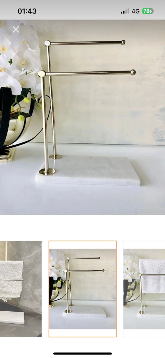 Mermer tabanlı metal çerçeveye sahip havlu askısı, dayanıklılık ve şıklığı bir araya getirir.