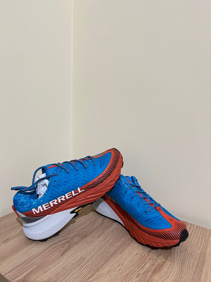 Merrell erkek koşu ayakkabısı, renkli baskılı tasarım, kauçuk taban ve cırt cırt detayına sahip, sportif sokak giyimi için uygundur.