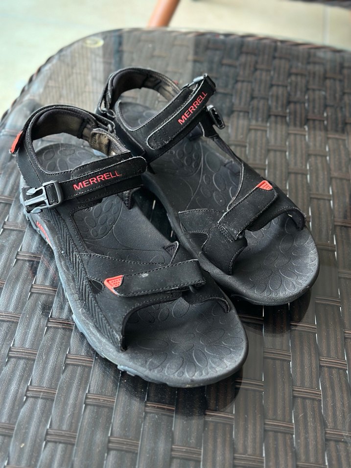 merrell erkek sandalet.. 45 numara.. gayet iyi durumda.. cırtlı ve aynı zamanda tak çıkar tokalı..
