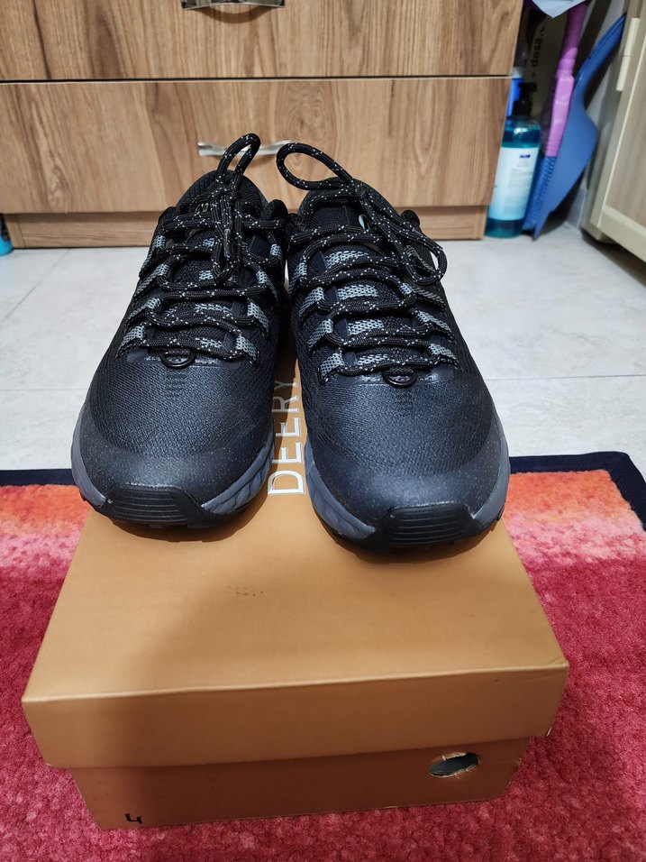 Merrell Spor ve sokak tarzına uygun, baskılı detaylı siyah bağcıklı erkek outdoor ayakkabısı. Dayanıklı kauçuk malzemeden üretilmiştir.