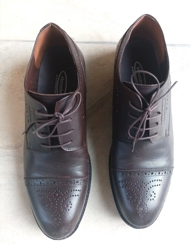 Ürün bir sefer giyilmiştir biraz sıktığı için başka giyimemiştir hakiki deri orijinal Koyu kahverengi deri, bağcıklı klasik erkek ayakkabısı. Düz yüzeyde ince delikli detaylar bulunur, ofis kullanımı için uygundur.