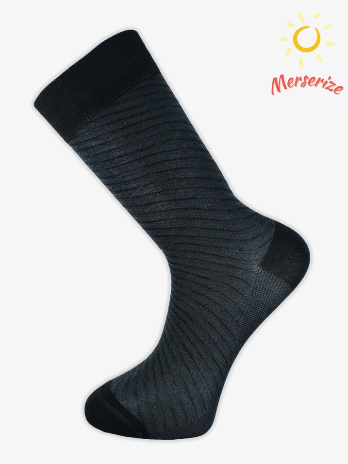 Merserize kumaştan, düzenli kesim ve hafif çizgili dokulu siyah erkek midi çorap.