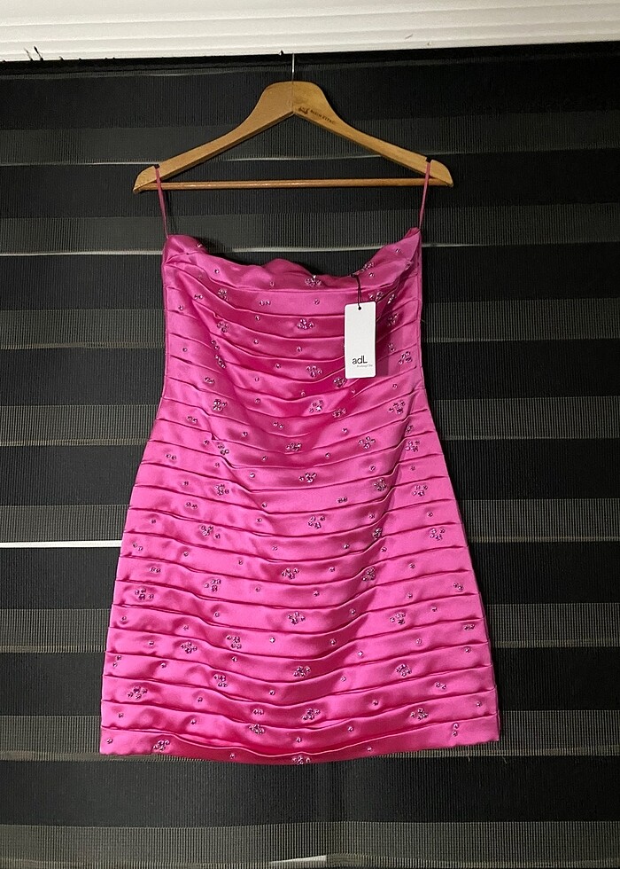 Mert aslan fuşya taşlı elbise