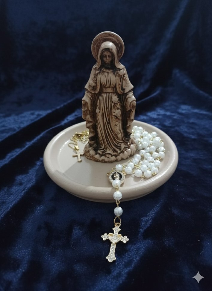 el yapımı Meryem Ana biblo ve takı tabağı. ayrı yada birlikte kullanılabilir. taş tozundan üretildi, boya ve vernik yapıldı. tabak 12 cm, biblo 10 cm boyutunda. farklı renklerle de çalışabilirim. ilan açtırın lütfen.