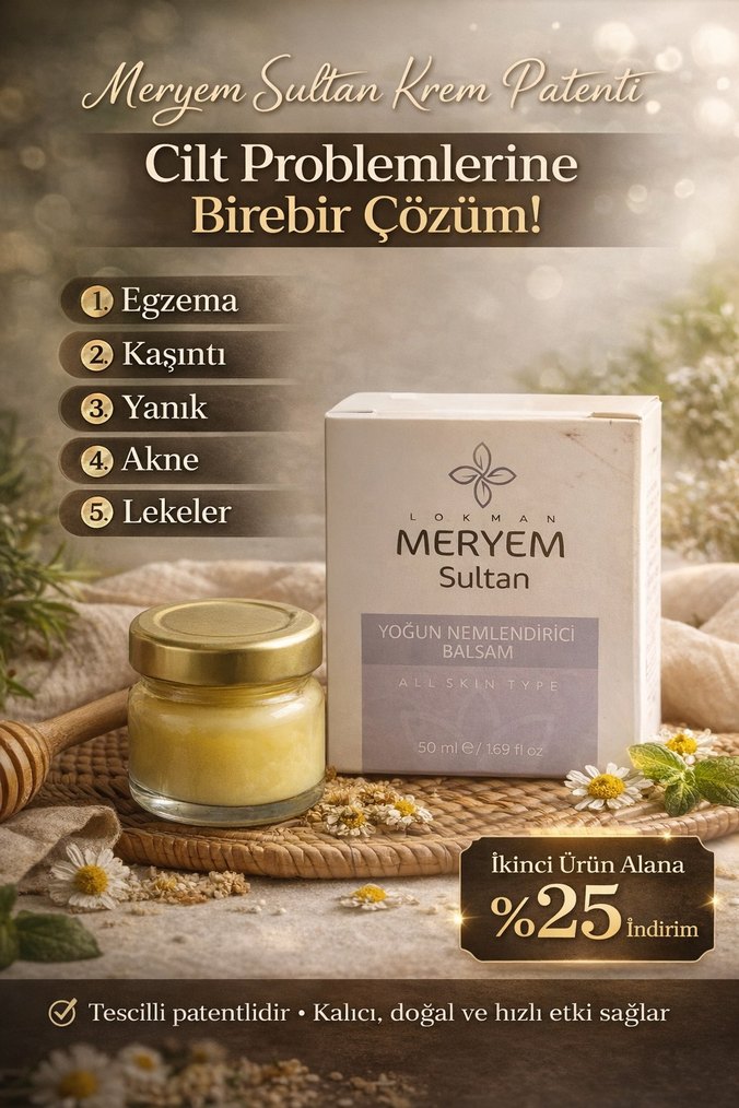 Meryem Sultan balsamı egzama, kaşıntı, yanık, akne ve lekeler gibi cilt problemlerine kalıcı, doğal ve hızlı etki sağlar. Yoğun nemlendiricidir.