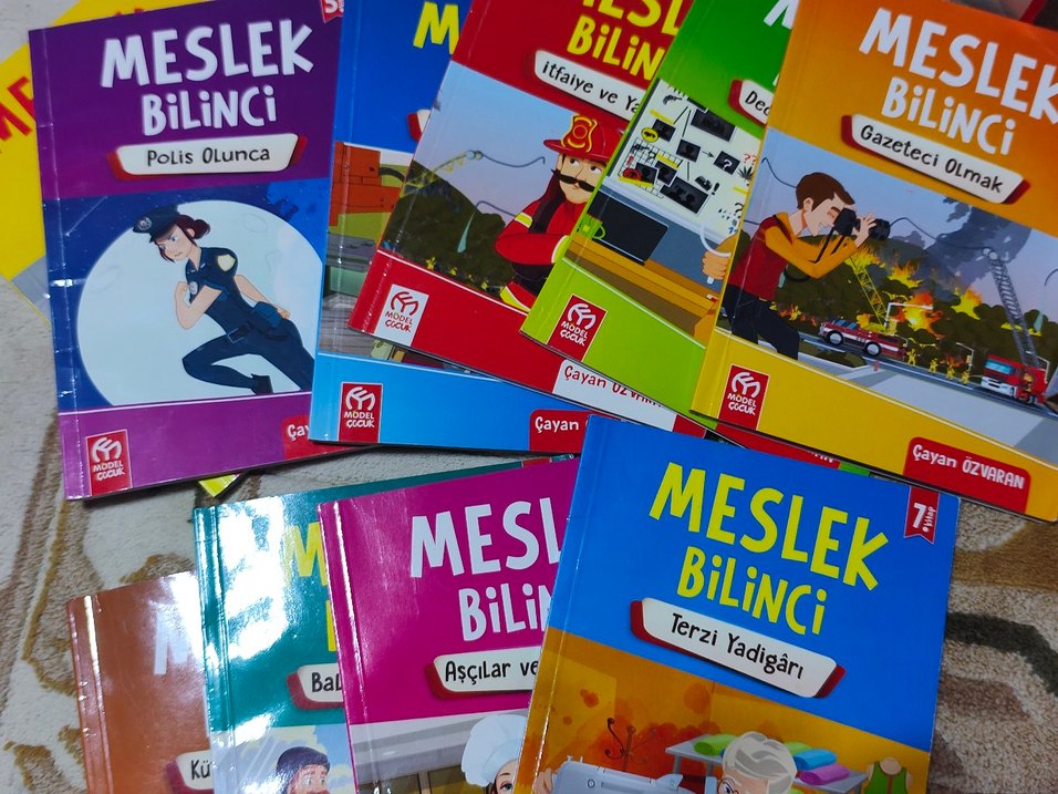 Çocuklar için Meslek Bilinci adlı kitap seti, itfaiyeci, aşçı ve terzi gibi meslekleri renkli çizimlerle anlatıyor. 3. ve 4. sınıf için uygundur.