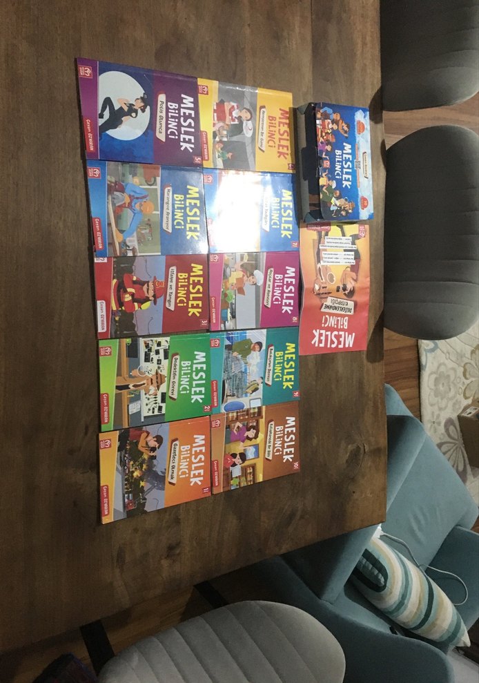 Çocuklar için meslekleri tanıtan, renkli resimlerle ve basit metinlerle hazırlanmış kitap seti.