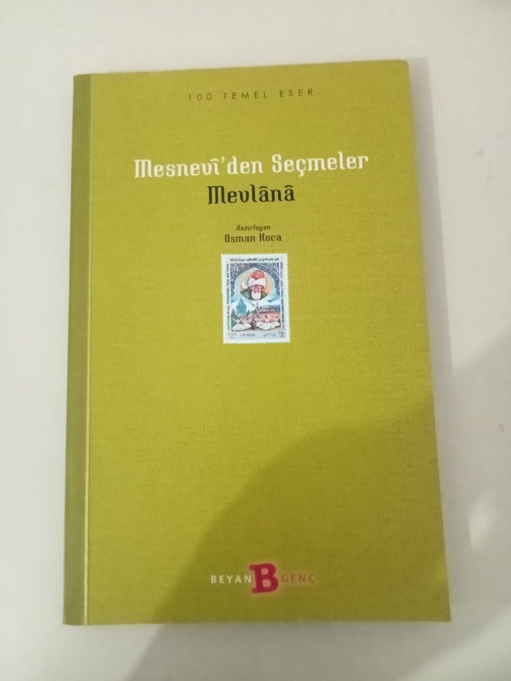 Mevlana'nın Mesnevi'sinden seçmeler içeren, Osman Hoca tarafından derlenen Beyan Genç yayınevi kitabı.