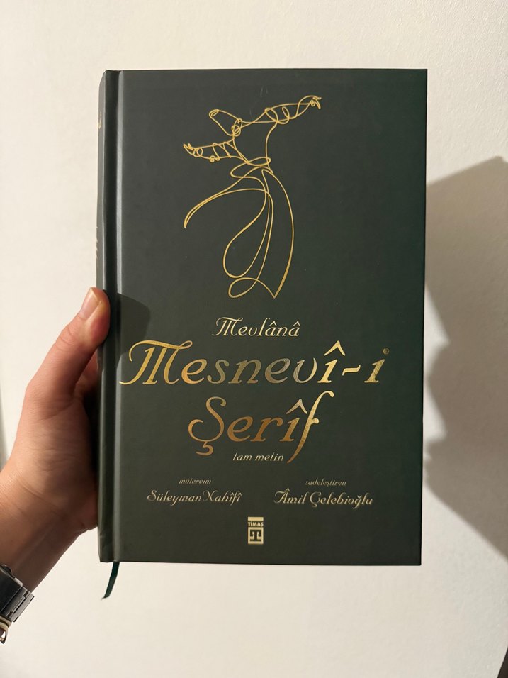 Mevlana'nın Mesnevi-i Şerif tam metni, sert kapaklı ve geleneksel hat tasarımı ile sunuluyor.