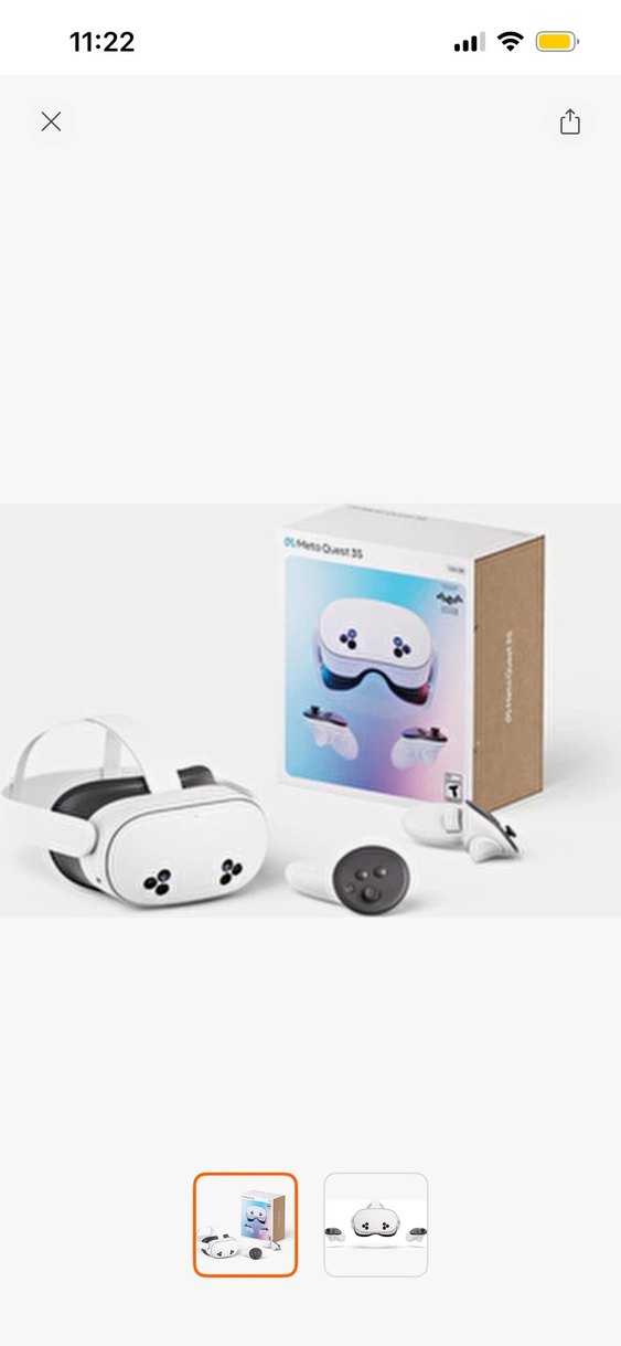 Meta Quest 3 beyaz renkte, VR başlık ve iki kontrolcü içerir. Kutu ile birlikte, sanal gerçeklik deneyimi sunar. Herseyı çalışmakta herhangı bor sorunu yoktur sadece kontrolculerin pilleri yoktur.