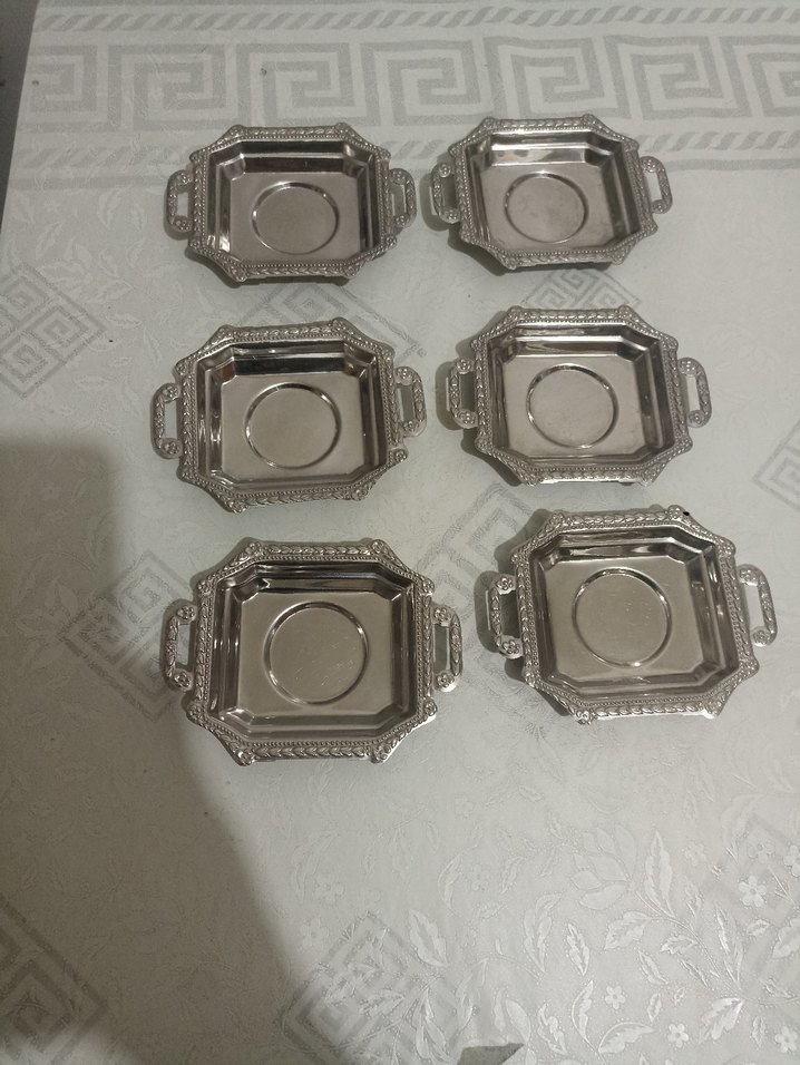 metal antika çay tabağı 6 adet.cok az kullanıldı kılcal çizikler var.babaannemden kalma.