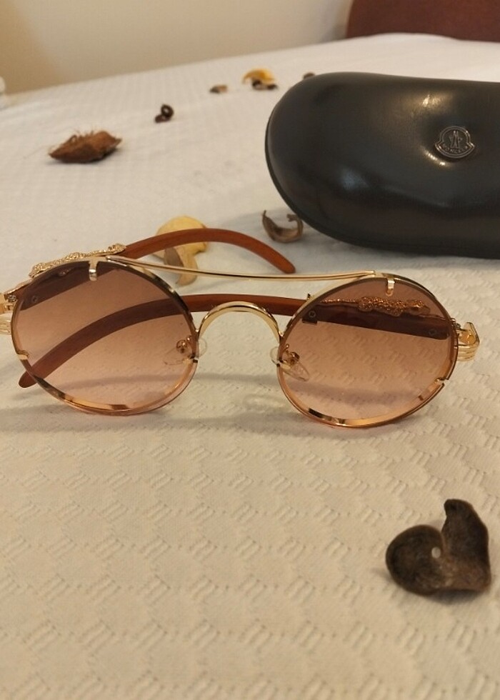 Açık kahve / Altın tonlarında ve yuvarlak metal çerçevelidir. Vintage tarzdır. Ürün hiç kullanılmamıştır. Kılıf ile gönderilecektir.