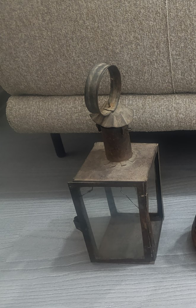 babaannemden kalan onlarin döneminde kullanılmış orijinal ürün Bej ve gri tonlarda metal çerçeveli, cam kapaklı dekoratif fener. Üstte kolay taşınması için yuvarlak sap bulunur. ️ İlk resmideki ürün tek haliyle satıştadır ikinci resim görsel amaçlidir