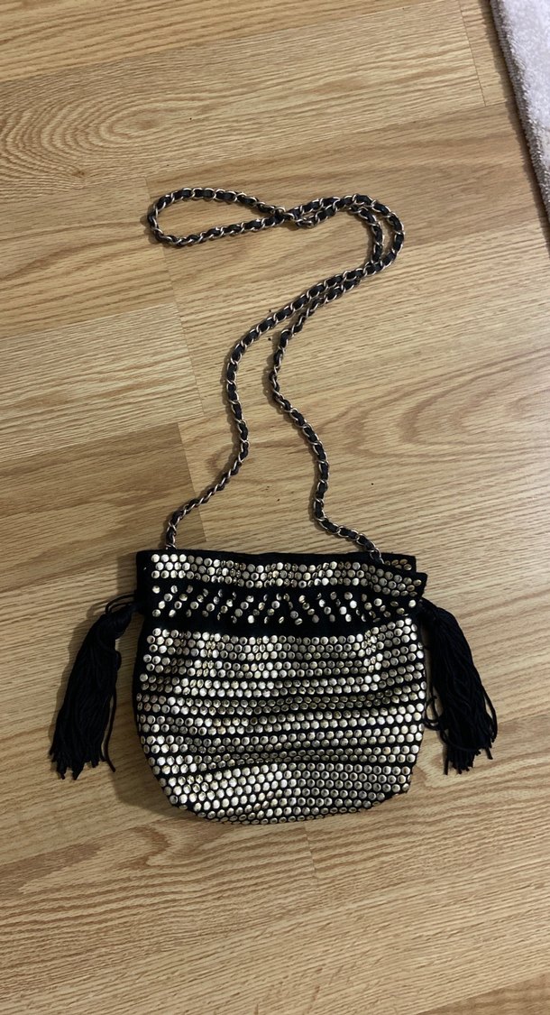 Gold metal düğmeli çanta harika bir parça