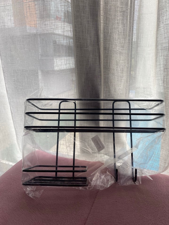 Kullanılmamış şampuanlık sabunluk ve duş lifi koyabilceğiniz metal banyo düzenleyici
