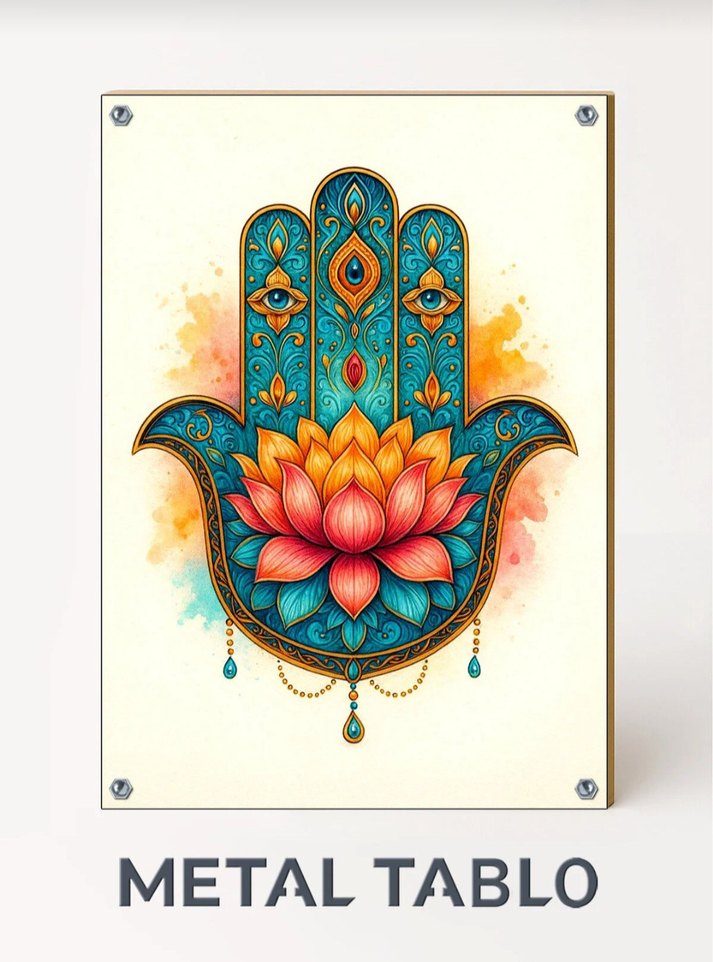 Renkli Hamsa eli ve lotus çiçeği desenli, detaylı metal dekoratif tablo. ️Ürün Açıklaması Özel aparatı ile tasarımları kolaylıkla masa üzerinde kullanabilirsiniz. Ürün hem masa üzerinde hem de duvara asarak kullanılabilir. Tasarımlar parlak yüzeyli, yüksek kaliteli, ChromaLuxe® alüminyum üzerine basılmıştır. Metal baskılarımız, çizilme ve aşınmaya karşı dayanıklı, çarpıcı ve dayanıklıdır. Metal üzerine yapılan bu özel baskılar, en sevdiğiniz anıları birlikte hatırlayabilmeniz için arkadaşlarınıza, ebeveynlerinize verilecek anlamlı bir hediyedir. Resimlerinizi raflarda, masalarda yada duvarda sergilenmeye hazır, göz alıcı metal fotoğraf baskılarına dönüştürmek çok kolay.