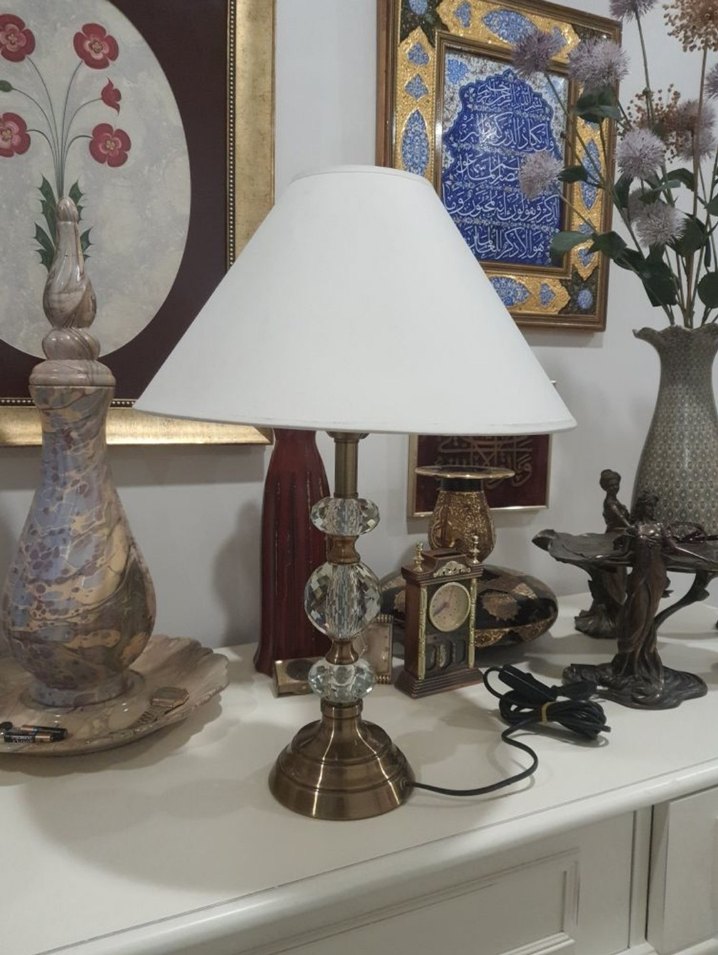 Metal Kristal Göbekli Abajurdur.İhtiyaç fazlası abajur satılıktır. Taksim Şishaneden alınmıştı. Son derece kaliteli ve temiz durumdadır. Ölçüleri yükseklik 50 cm, sapka capı kargo tarafıma ait olduğundan ve yüksek tuttuğundan indirim talep etmeyiniz.beylikduzueldenteslim.