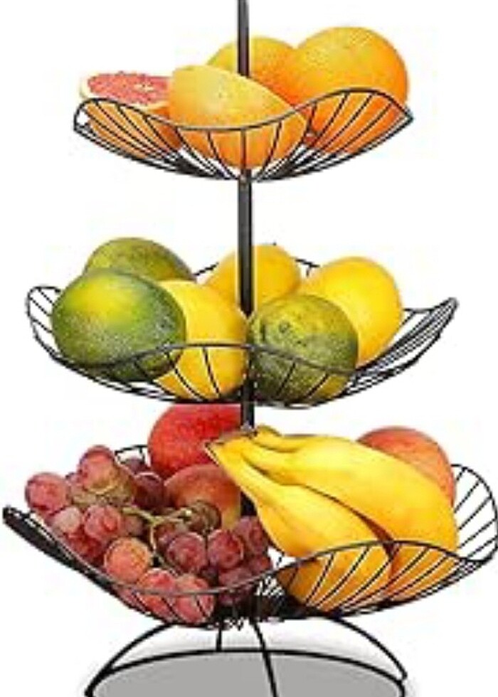 Sıfır yurtdışı ürünüdür. Ürünlerin daha iyi korunması için meyve ve sebzelerin ayrı ayrı üst üste bindirilmesine izin veren meyve sepeti. Sağlam metalden yapılmıştır.