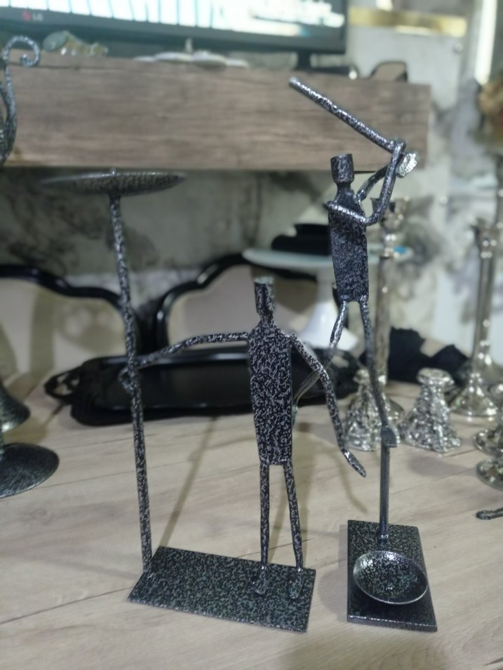 Metal Siyah Gri Dekoratif Figürler şamdan